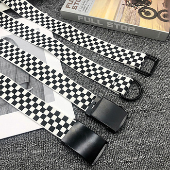 Baojun Xinzhi 트렌디 클래식 블랙 화이트 체크 무늬 편지 합금 상자 프레임 버클 3.8cm 105cm 남성 여성 쿨 인 스타일 화물 벨트