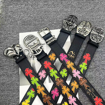남성용 다채로운 크로스 가죽 꽃 합금 핀 버클 벨트 롤러 중공 덩굴 천공 여성 빈티지 3.8cm