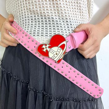 Винтажный стиль, пряность для девушки, Повседневная Коричневая текстура, нишевая тарелка, пряжка, ремень, термопереводный принт, унисекс